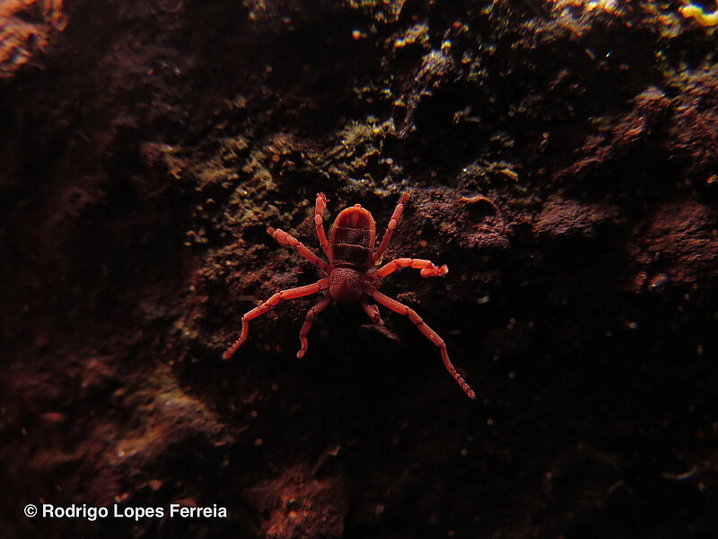 Ricinulei are known as hooded tick-spiders. There are between 50 – 60 species of ricinuleids, all in one family (Ricinoididae). They occur in the rainforests of western and central Africa and in caves and forests from Texas to Peru. Fossil ricinuleids date back to the Carboniferous of Euramerica and the Cretaceous Burmese Amber.
